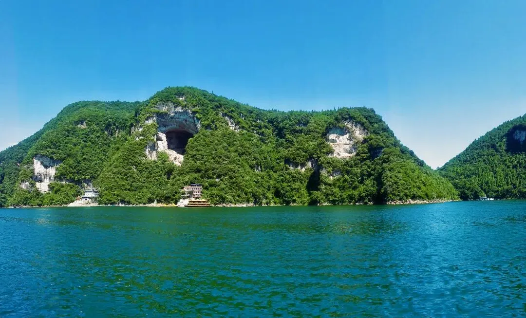 起航欣赏清江风光,游览进入清江画廊风景区的第一个主要景点——倒影峡。