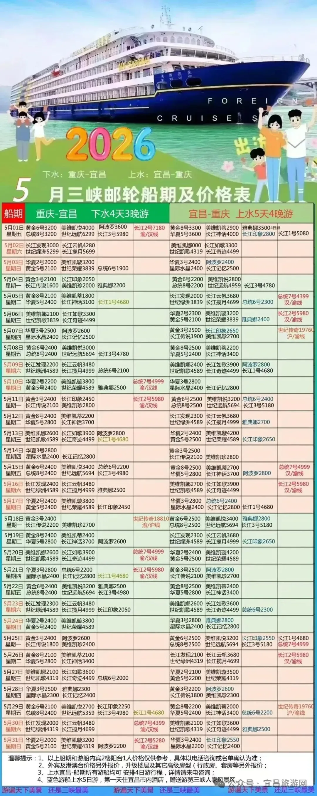 宜昌到重庆上水五天四夜