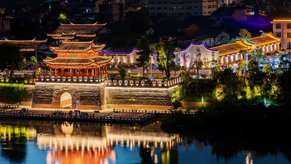 18:30-19:30 | 七峰叠翠风景区 | 走免费虬龙栈桥、玻璃栈道,登凝翠阁俯瞰沙溪河全景,等待夜景灯光秀 |