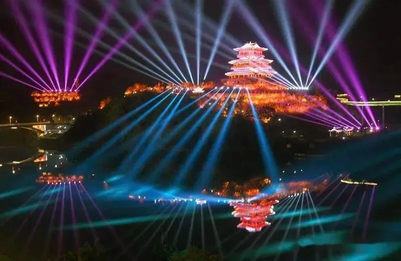 打卡七峰叠翠夜景灯光秀,逛沙溪河畔夜景,文昌阁 AR 水幕秀,返回酒店休息