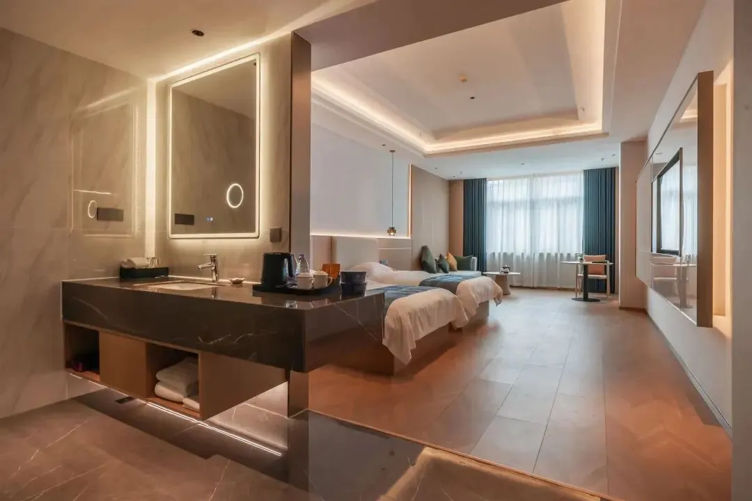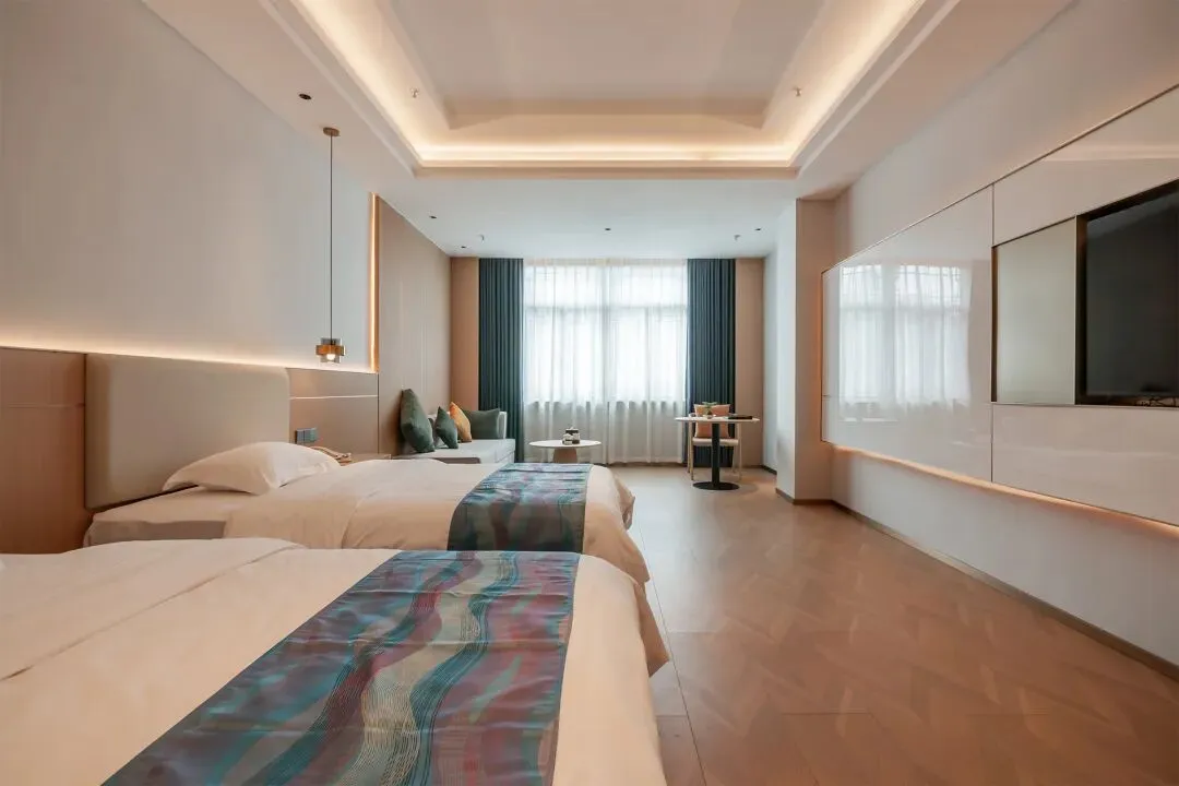 168 间全品类精装客房,从豪华大床房到花园套房全覆盖,床品严格执行一客一换灭菌标准,全屋深度清洁消杀,隔音效果绝佳,玩累了就能一夜安睡,客房内还配备了非遗沙县红边茶与专属茶具,足不出户就能感受本地茶文化