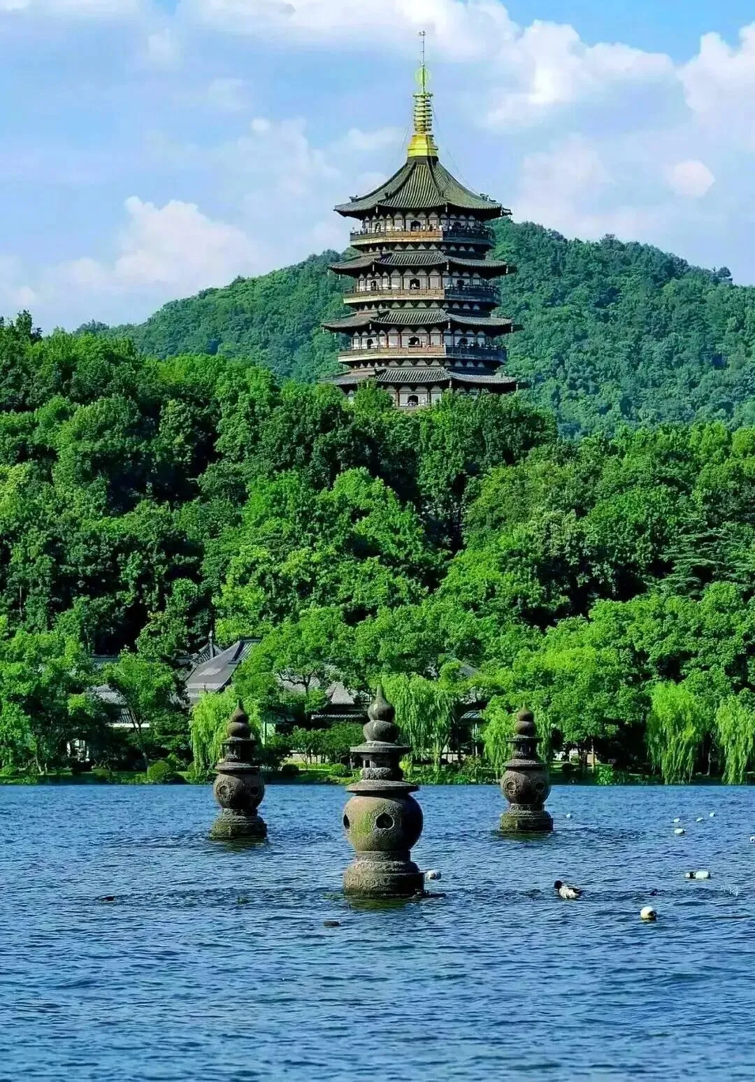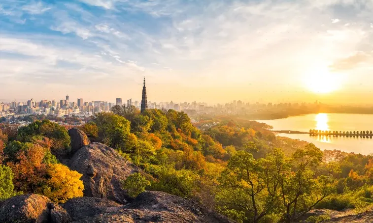 在杭州,得留足时间给西湖。苏堤的春晓是嫩柳蘸着水,断桥的残雪是留白的画,乘一叶画舫荡在湖心,三潭印月的石塔在波心摇晃,岸边的雷峰塔藏着千年的传说。灵隐寺的香火混着桂花香(秋日限定),龙井村的茶园铺成绿色的梯田,随手摘片茶叶,指尖都带着清冽。傍晚去河坊街,定胜糕的甜、葱包烩的香,混着老巷的烟火气,把胃填得暖暖的。