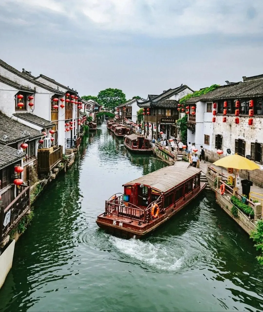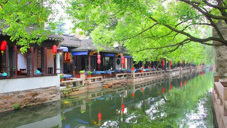 到了苏州,便跌进了“小桥流水人家”的梦里。拙政园的假山是移步换景的趣,留园的冠云峰藏着太湖石的瘦、透、漏,退思园的月洞窗框住一片天,每一扇门都像在邀请你走进画里。平江路的水巷边,评弹艺人拨动三弦,“唐伯虎点秋香”的故事顺着水波淌开,乘一艘摇橹船,看白墙黛瓦在水里揉成一团绿,船娘的吴侬软语比水波还柔。
