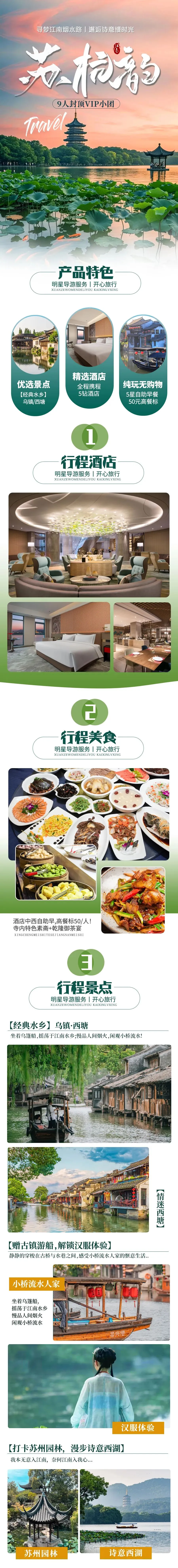 ★ 【优选行程】精品9人纯玩小团,真纯玩0购物,优秀导游,精华苏杭,坚持品质,放心出游 ★ 【精选酒店】夜宿乌镇+苏州+杭州4晚5钻酒店,自助中西早餐,多重水乡餐,吃好住好玩好不含糊 ★ 【缤纷景点】网红乌镇+周庄双夜游,经典5A水乡 乌镇+西塘,名园拙政园,赠寒山抄经体验
