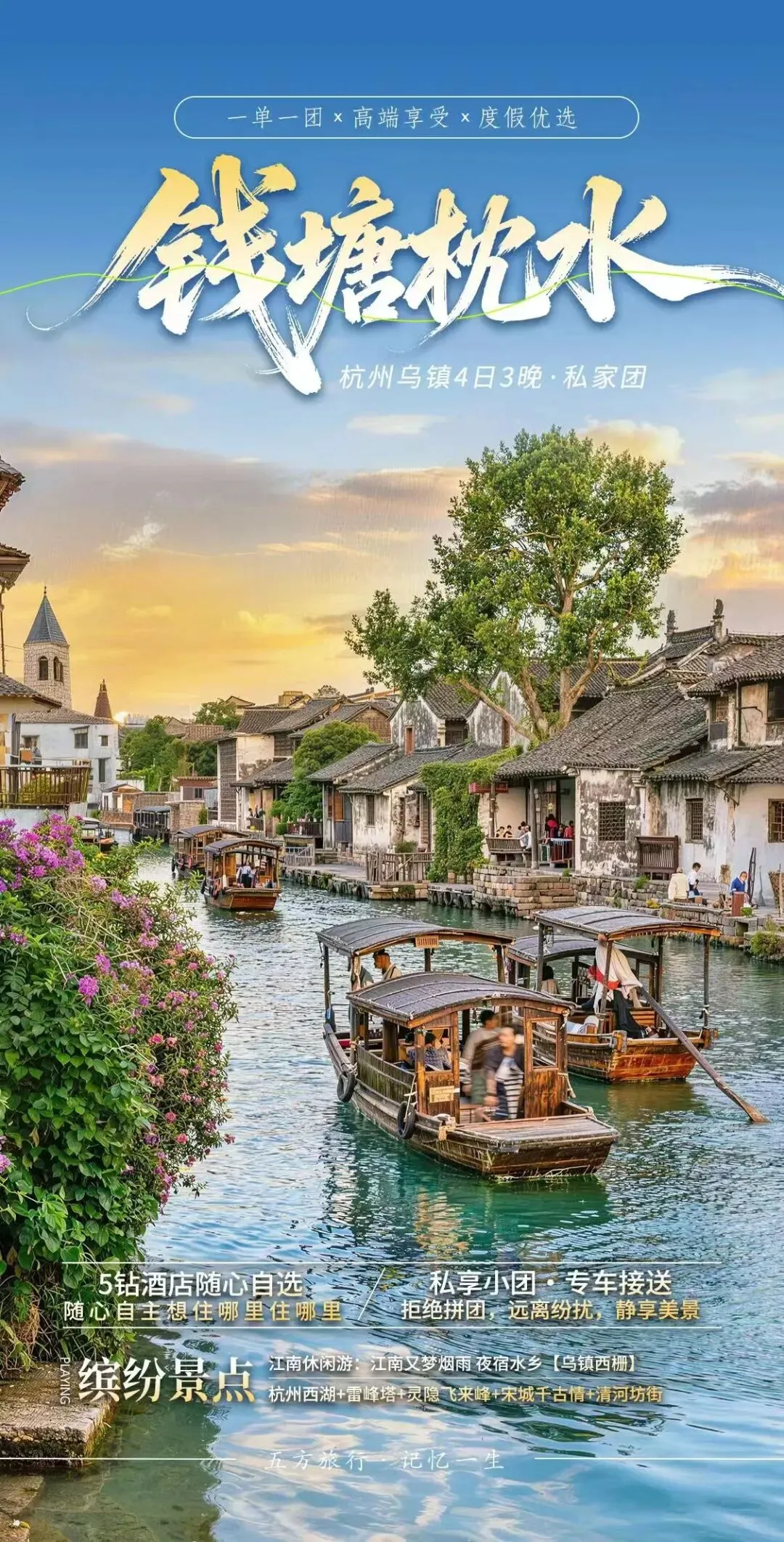 杭州+苏州+乌镇+西塘古镇5日4晚拼小团¥2934/人起