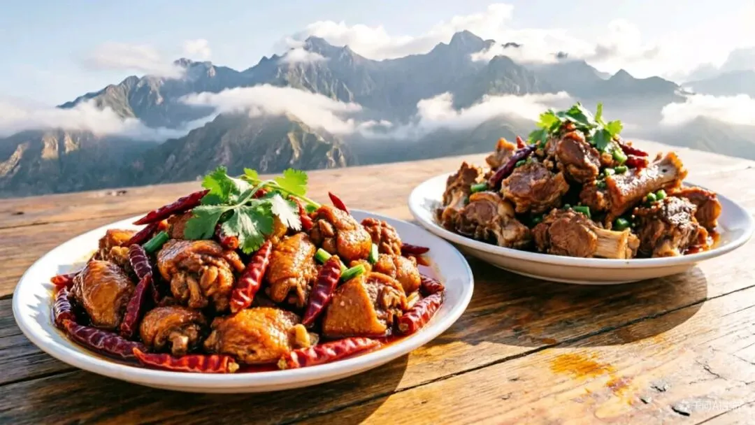 3. 第3张:新疆大盘鸡、手抓肉等本地特色美食特写