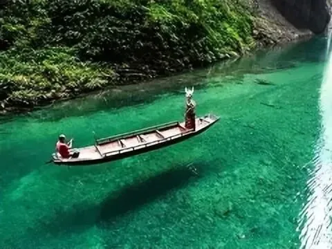 :坐船游 “中国仙本那”,水清澈见底,船似悬浮空中。