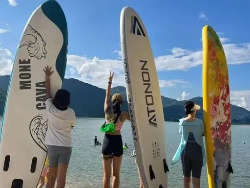 傍晚:打卡漫漫沙滩,免费开放,细白沙滩、彩虹步道,日落时橘子色江面浪漫到极致,可玩皮划艇、沙滩露营。