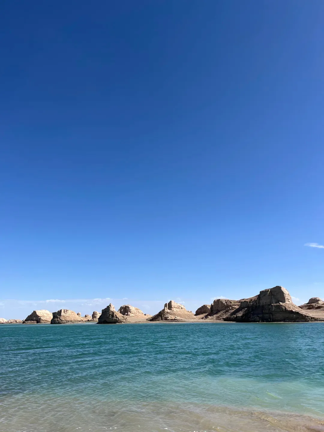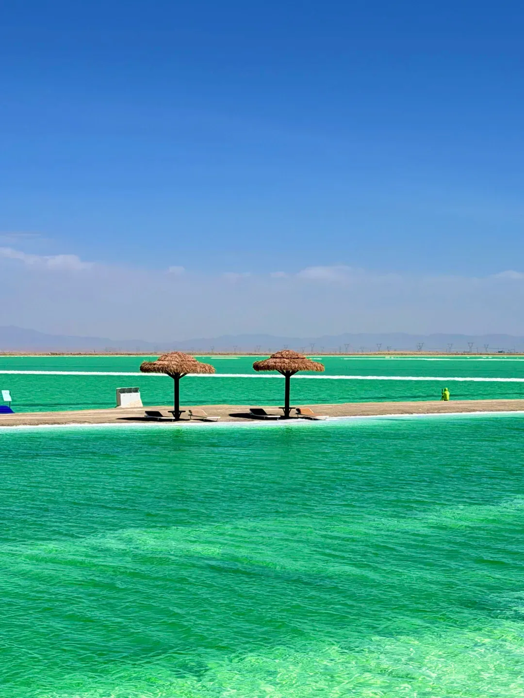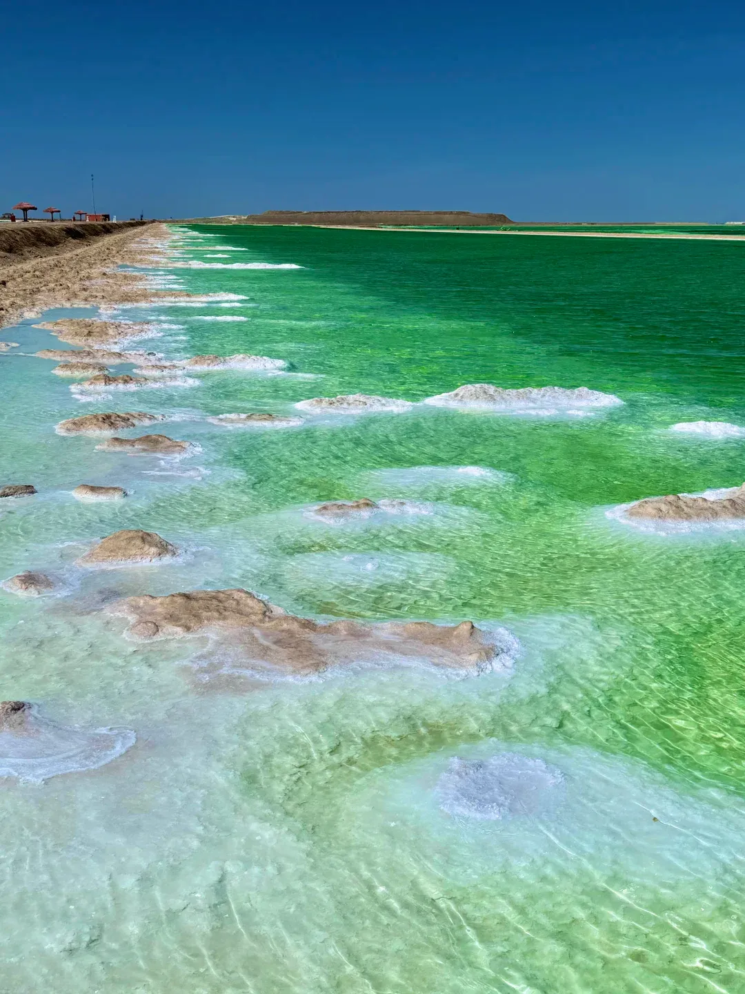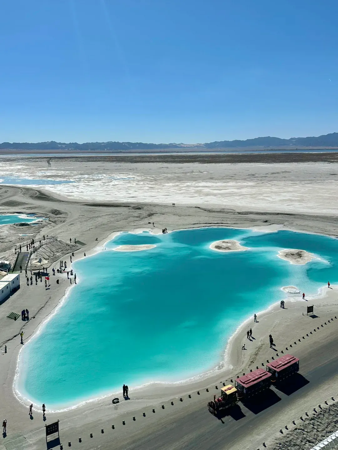 这里原本是钾肥矿区,后来改造成景区,湖水因为矿物质含量不同,呈现出从浅绿到深蓝的渐变色,像一块块翡翠镶在戈壁滩上。