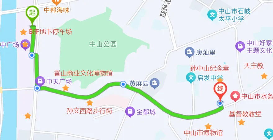 将车停到中山兴中广场-B座-地下停车场,步行到附近的景点