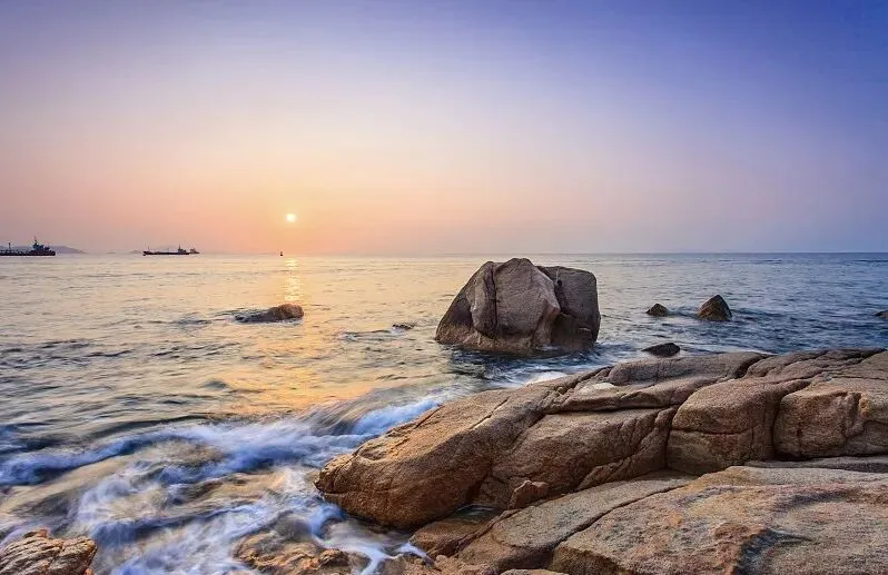 在一个不知名的海滩,我们没去网红打卡点,就坐在礁石上,看海。