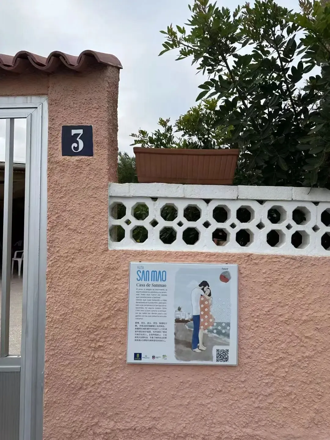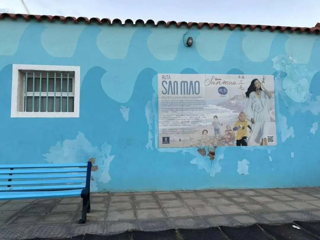 顺着三毛故居门口的路往下走,直到男人海滩(playa del Hombre)的方向,这一块都叫男人海滩区的,就会发现,这里被装饰成三毛角落,里面有三毛的简介(很遗憾将三毛的出生日期写错成1948),和她的著多著名的诗句,