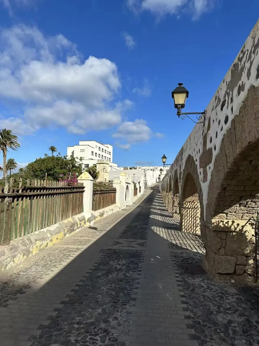 教堂下面的一条下沉步道,是古罗马建筑的遗迹,白墙之外是柑橘和牛油果果园,偶尔烈焰一般的三角梅垂下怒放,整个画面非常有地中海气质,这一带拍照真是出大片的地方。三毛喜欢来此散步,构思文章。也是她去拜访印尼华侨郭太太的地方,详见三毛的文章《克里斯》。