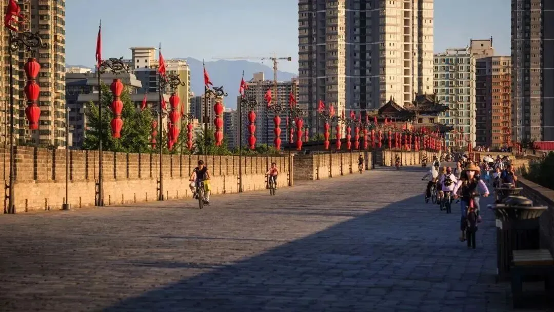 下午登西安城墙,首选永宁门入口,此时旅行团大军渐退,光线柔和绵长,租一辆自行车缓缓骑行,看夕阳漫洒在千年城墙上,晚风轻拂,感受古都的静谧与壮阔,远比白天人挤人舒心太多。
