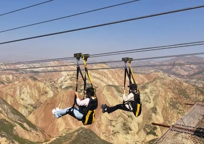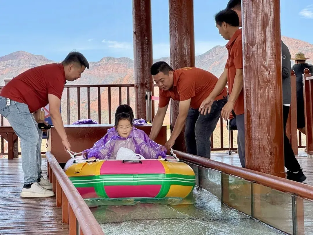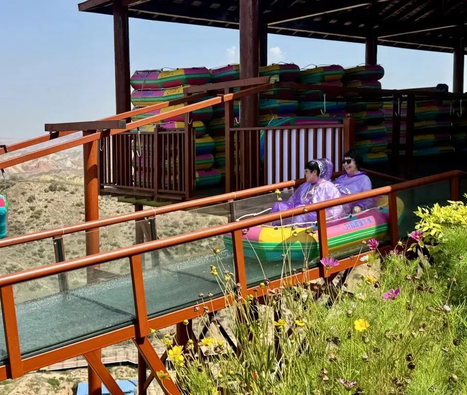 玻璃漂流绝对是兰州水墨丹霞的王牌项目。滑道全长2.5公里,垂直落差约150米,设计了S型弯道与螺旋弯道,惊险刺激。乘坐特制漂流艇,沿着透明玻璃滑道飞驰而下,水花飞溅,只留下刺激与畅快。