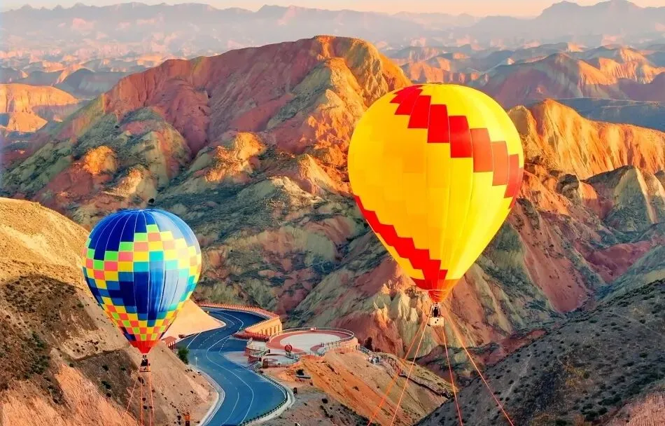 乘坐热气球,缓缓升空,换个视角看丹霞。从高空俯瞰,连绵千里的丹霞、蜿蜒的山脉,一切都变得渺小,享受独特视角带来前所未有的震撼与浪漫。