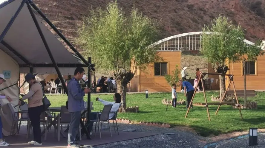 在这里你可以和家人、朋友一起在营地帐篷烧烤,品尝美食,分享快乐;或是静静地坐在草地上,仰望蓝天白云,感受微风拂面,让身心得到彻底放松。