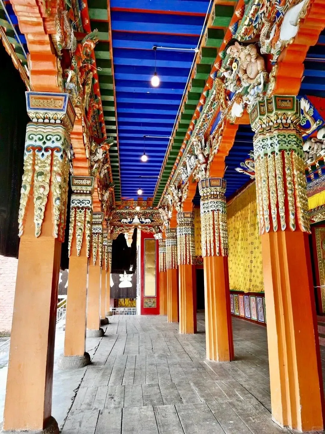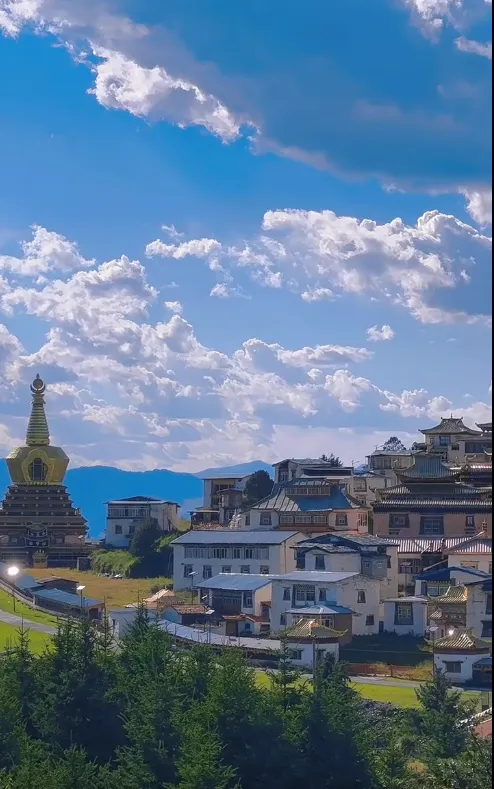 在海拔3500米雪山环抱中,始建于1414年的大藏寺藏着明代壁画+乾隆御赐象牙印章,寺庙规模宏伟,布满了3座山坡,大多为鲜亮的石木平顶建筑。