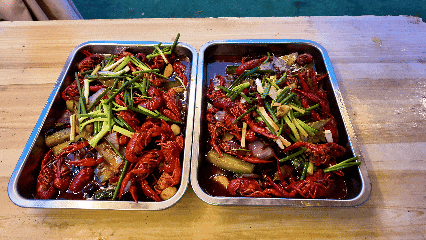 钓到的虾现场即可加工炒制