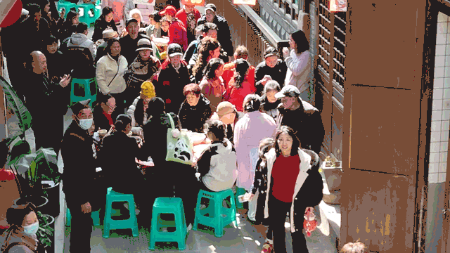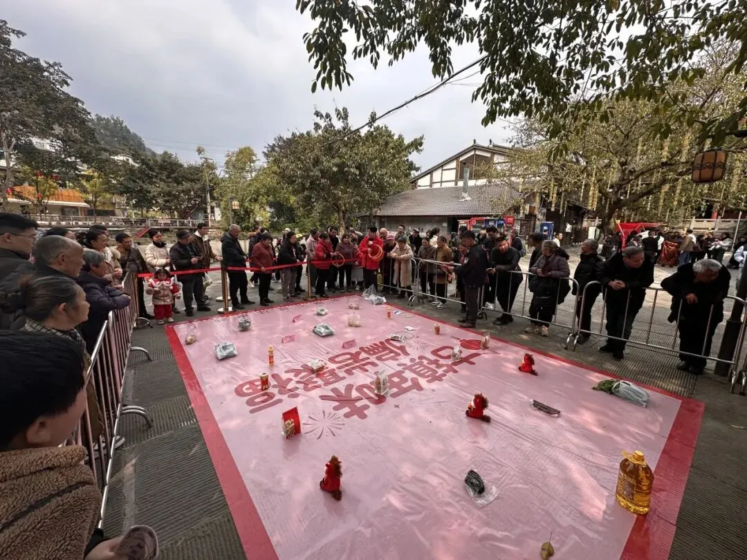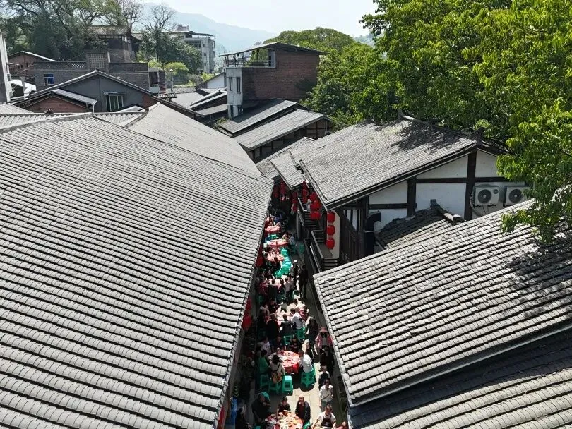 数张桌沿街铺开灯笼亮起,锣声一响,正式开席