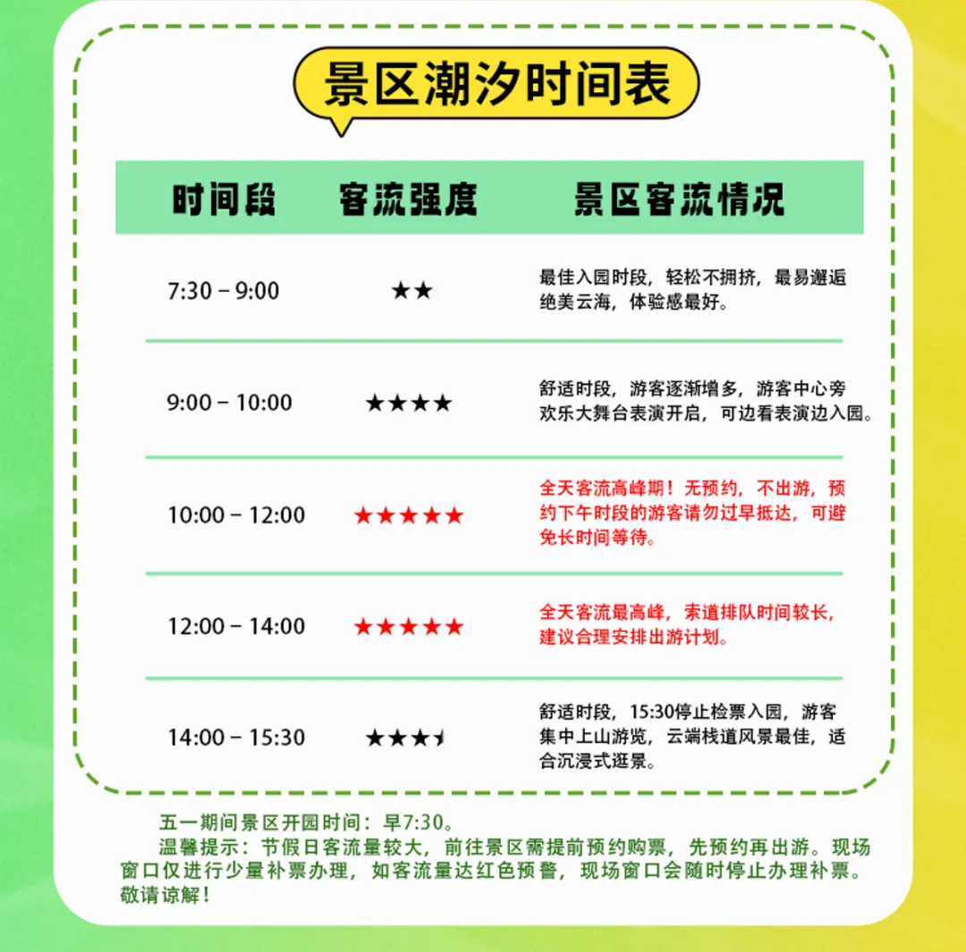 4.云漫花境、龙腾阁限定开放时间为每年4月初-4月下旬;油画森林及彩林步道限定开放时间为每年10月中旬-11月初,具体以实际为准。