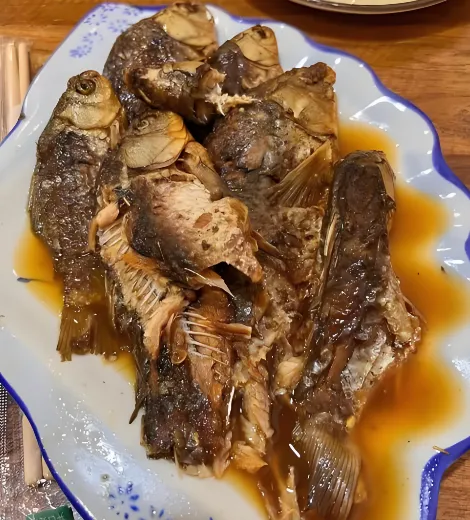 第三美食:圣旨骨酥鱼——赵匡胤御封的千年经典这道菜大有来头,是被赵匡胤颁旨御封的。选用鲫鱼,配以葱姜蒜醋糖,用砂锅文武火炖上三四个小时,整条鱼原样不变,但骨酥刺烂,从头吃到尾不用吐刺,酸甜绵嫩,连鱼鳍都是酥的。寻味指南: 磁县特色,一定要尝尝,据说还能补钙。