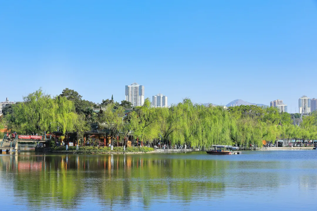 "昆明的眼睛",城中碧玉。阮堤、唐堤将湖水分成五区,荷柳相映,四季皆美。冬季红嘴鸥聚集,夏季荷花盛开。周边云南大学、陆军讲武堂串联成文艺散步路线。