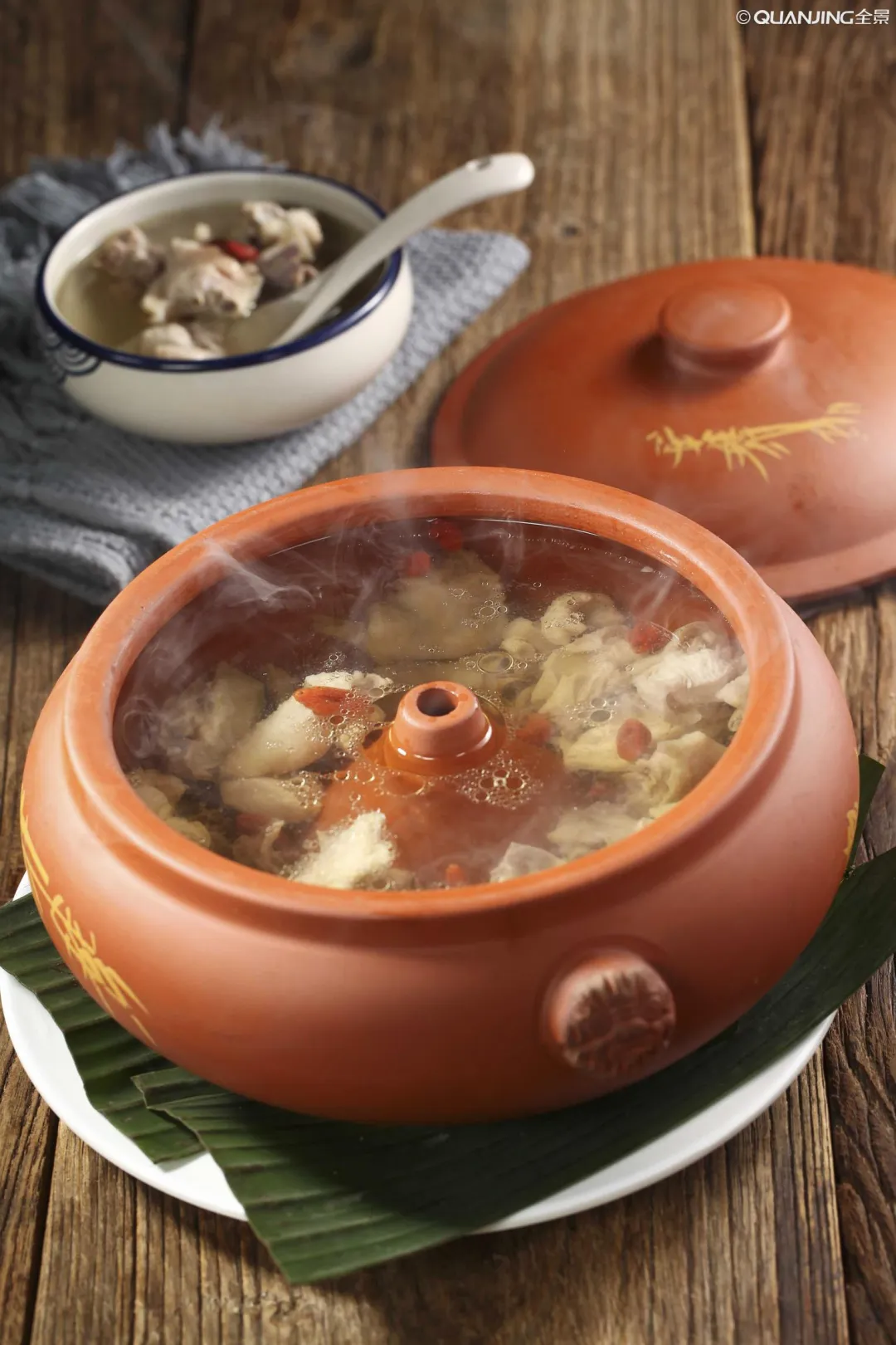 国家级非物质文化遗产!用建水紫陶汽锅蒸制3-4小时,蒸汽凝结成汤汁,鸡汤清醇不腻,鸡肉软烂脱骨。加入三七粉或松茸,滋补又养生。