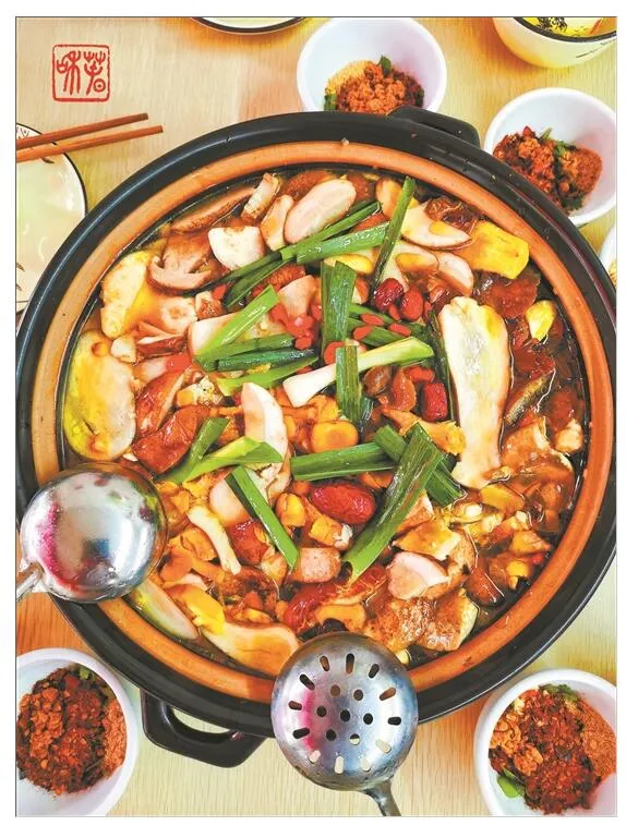 雨季限定!云南"野生菌王国"的专属馈赠。鸡枞、干巴菌、牛肝菌等汇入土鸡汤底,鲜香爆表。干巴菌自带牛肉干香气,鸡枞被誉为"菌中之王",每一口都是山野的鲜灵。