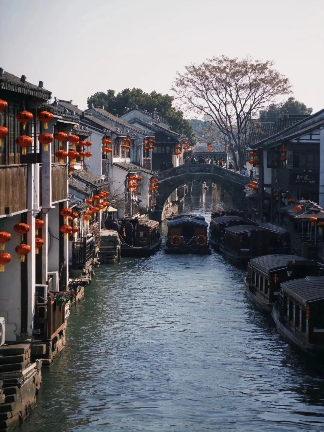 虎丘的塔下全是春景,寒山寺安安静静,傍晚去山塘街看红灯笼,氛围感直接拉满。