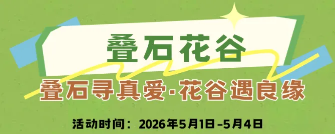 “千人”NPC天团+“百个”互动场景+分龄定制玩法!每天上午10点半、下午2点【定点快闪+全园巡游】。青年交友才艺舞台、三大专属亲子项目、艺术交流区全天开放……全年龄段都有专属玩法。4月28日-5月4日,叠石花谷景区内将举办“以声为旗 为渝而战”2026音浪超级联赛重庆赛区厂牌赛,等你共赴一场音浪狂欢!