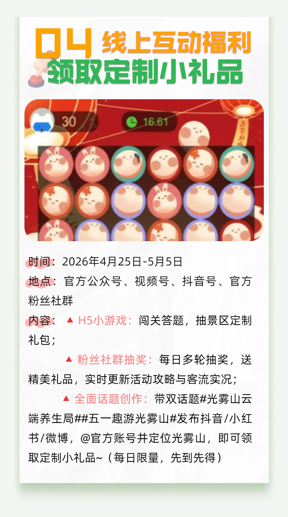 您现在的位置是:首页 > 国内旅游目的推荐 > 正文 国内旅游目的推荐 @所有人,五一倒计时!光雾山最全游玩攻略请查收~�� admin2026年04月25日 08:57:17国内旅游目的推荐1 @所有人,五一倒计时!光雾山最全游玩攻略请查收~�� - END -免责声明:本宣传资料相关文字、图片仅作为景区宣传使用,不在任何意义上构成企业的要约。部分图片内容来源于网络,版权归原作者所有,如有侵权,请联系管理员删除。 转载请说明来源于"旅荐网",部分内容转载自网络,如有侵权请联系qlwl@foxmail.com删除 本文地址:https://www.15386.cn/post/158294.html 上一篇 康辉旅游-此时好时节,疆内好风光|五一假期全景点游玩指南(4月23日更新) 下一篇 临泉五一放大招!从早玩到晚,这份“宝藏”游玩指南请收好 | 皖美宝藏小城临泉 | 春游江淮 相关文章 收藏!汉中黎坪五一出游指南,路线 + 门票 + 美食全覆盖 06男大学生五一穷游南宁三天两晚旅游攻略 赴一场风花雪月 —— 云南旅游全攻略 帮爸妈订旅游攻略,别再瞎选了,看过来(四川篇-眉山) 我用 AI 做旅行攻略,省了 3 天时间 天马有约·畅游武威|五一旅游攻略〈二〉慢游武威 4天南京旅游攻略 J女友做的南昌旅游攻略.已经top level 不止有热血闽超!这份莆田游玩全攻略请收 旅行指南 | 零基础也能放心冲!日惹 4 家超友好健身房,入门不踩雷 发表评论 取消回复 评论列表 这篇文章还没有收到评论,赶紧来抢沙发吧~