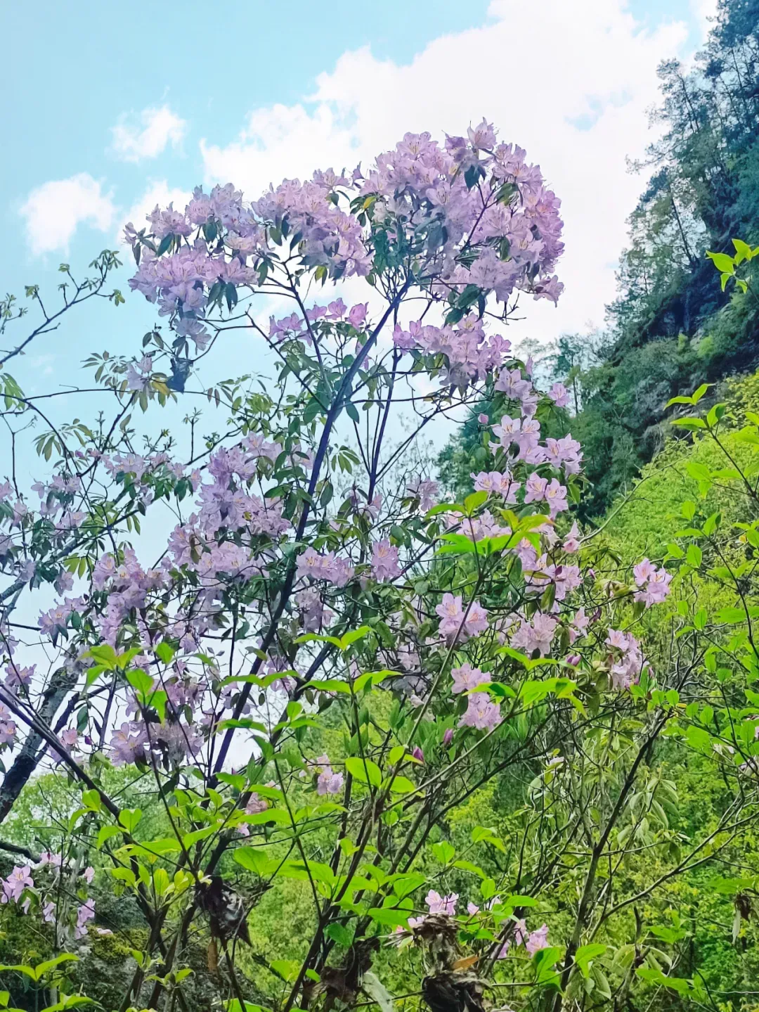 🚩红尘峡(游玩约1.5小时):核心打卡点,拥有碧潭瀑布,此时溪水清澈,与山间盛放的杜鹃相映,栈道平缓,徒步难度低,是摄影绝佳地,沿途可听溪水潺潺,沉浸式感受山林静谧。