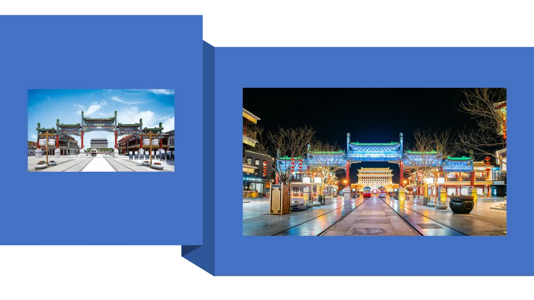 3.前门大街位于京城中轴线,是正东坊和正西坊的分界线。明嘉靖二十九年建外城之前,是皇帝出城赴天坛、山川坛的御路。