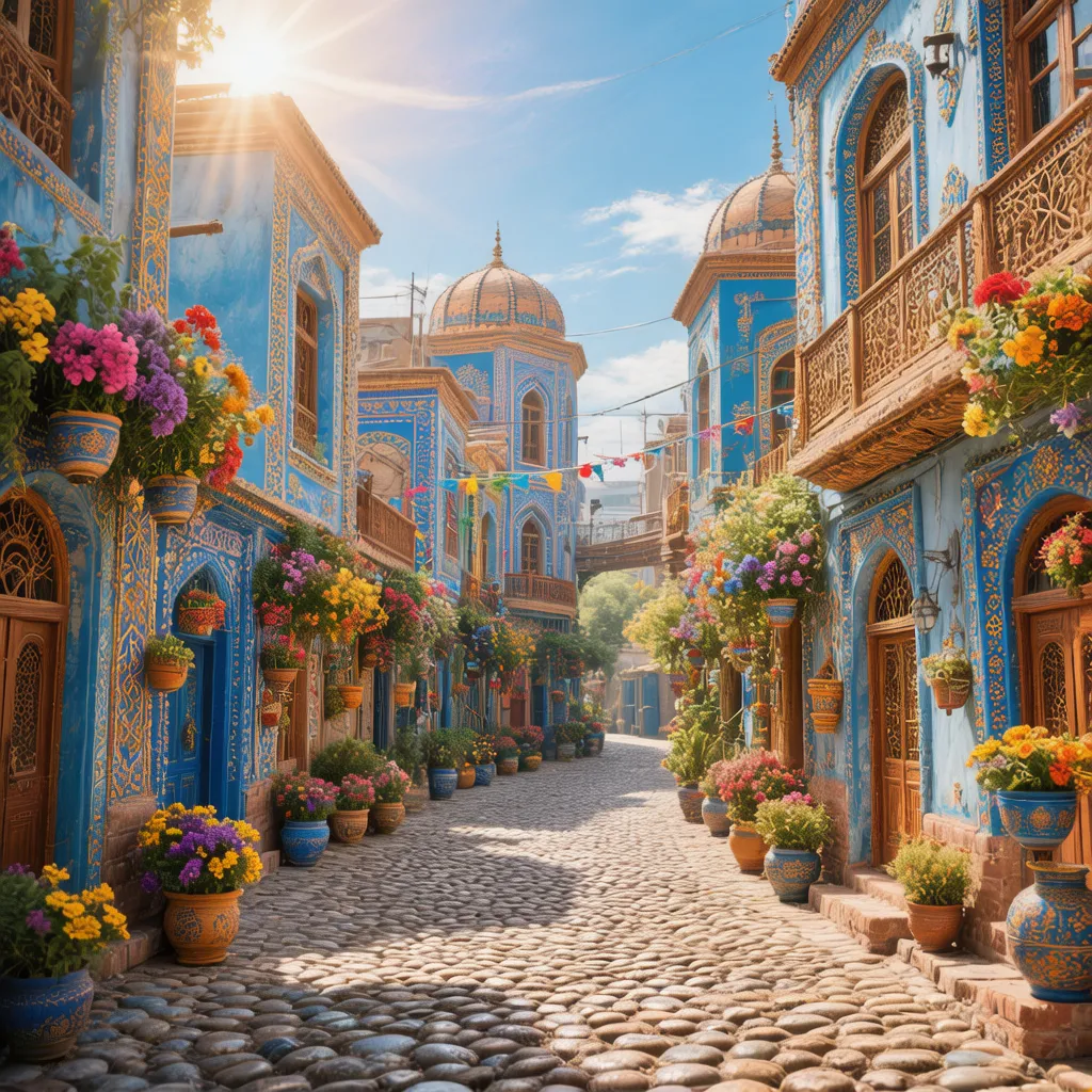 伊宁六星街 · 蓝白相间的维吾尔族建筑,浪漫街景