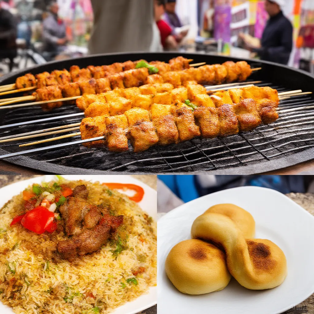 新疆美食 · 烤肉 · 抓饭 · 烤包子 · 拌面
