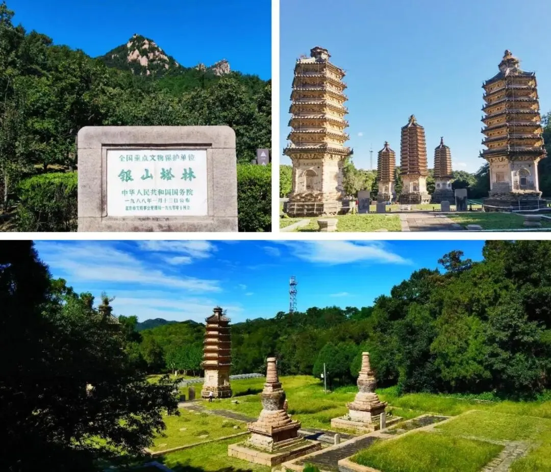 上午前往深山之中的银山塔林。这里曾是辽金时期的佛教圣地,现存17座形态各异的古塔,耸立在苍松翠柏之间,极具视觉冲击力。