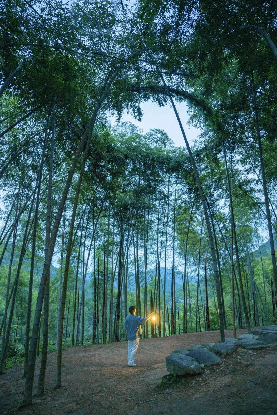 在横坑的竹林深处,藏着一座“会呼吸”的竹林剧场。这座建筑没有一颗钢钉,全靠自然生长的毛竹围合而成。