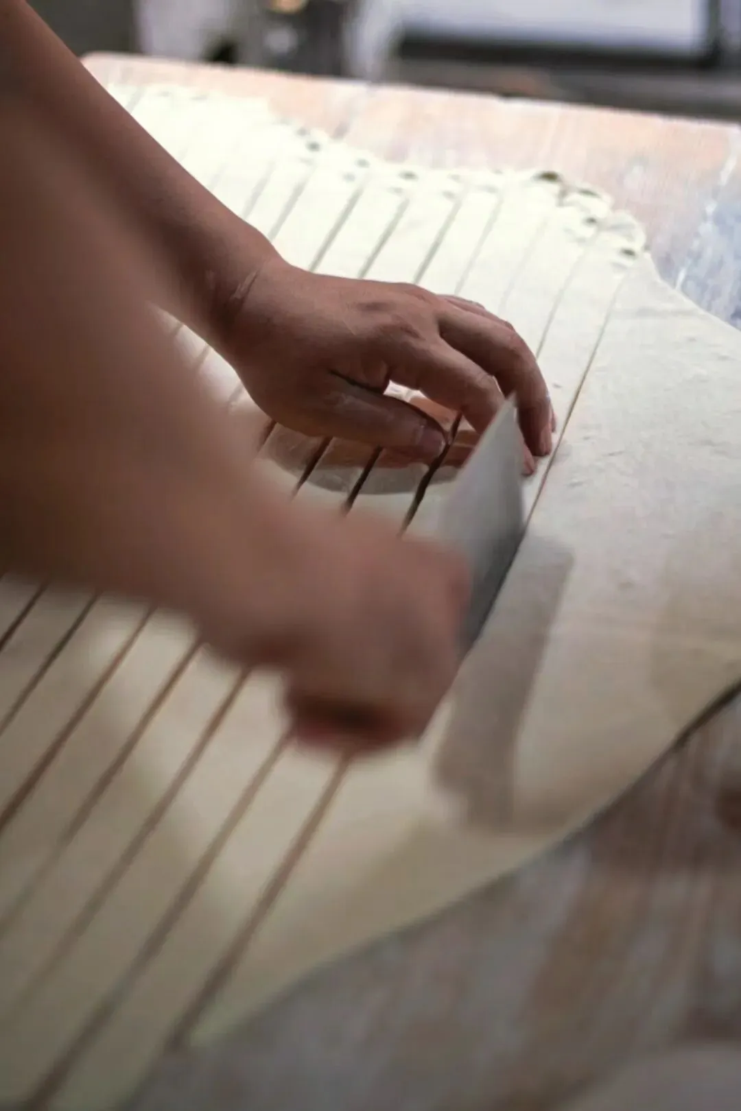不同于过去每家每户必备面板面杖制作的“打面”,水牵面更显家常与软滑。口感筋道又顺溜,搭配上松阳特色的酒糟大肠浇头,酒香与油脂在舌尖交融。