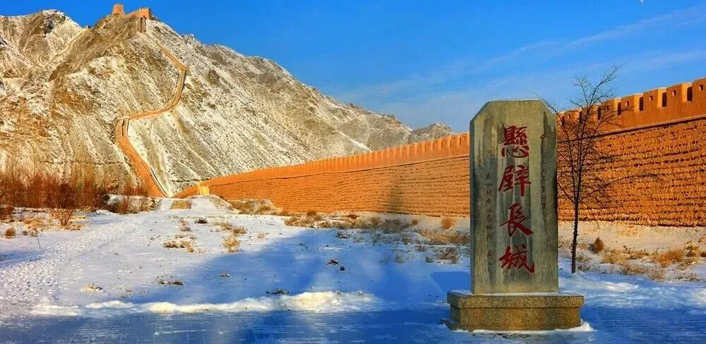 位于关城北侧约8公里处的悬壁长城,修建在黑山山脊之上,因45°陡坡的“长城倒挂”奇观而闻名。