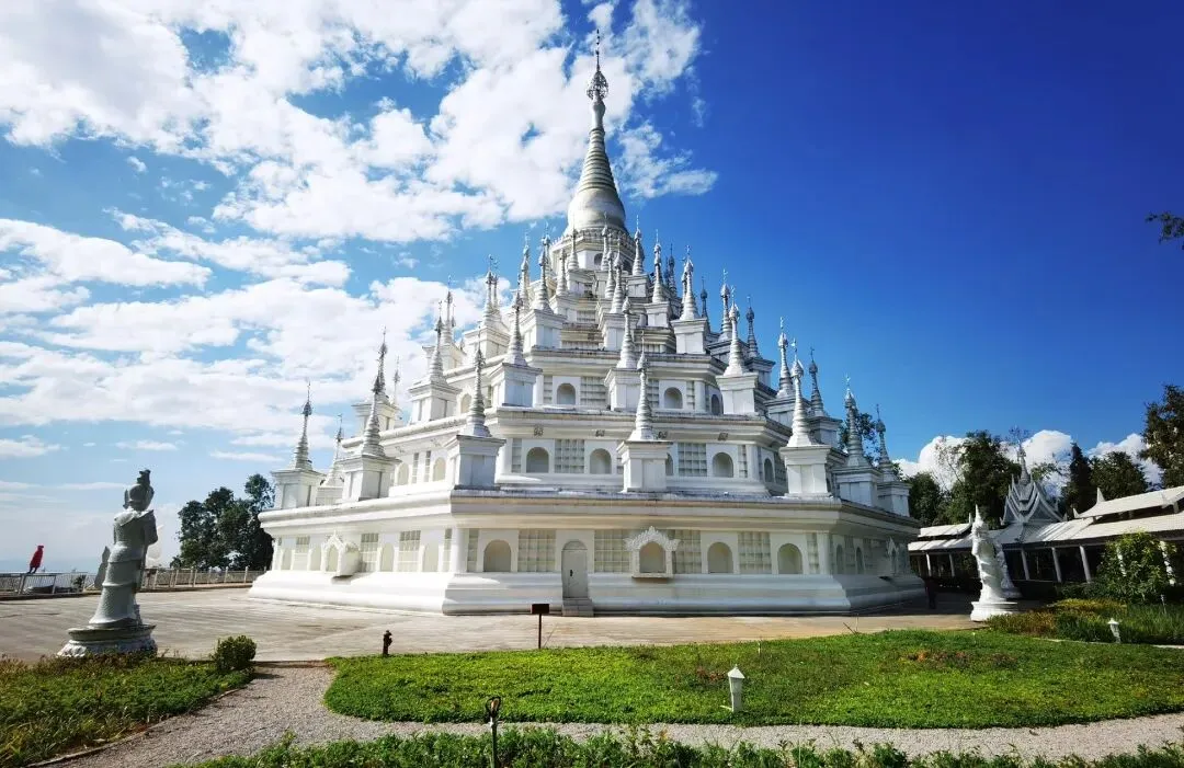 勐焕银塔:纯白傣风佛塔,与金塔隔山相望,夜景如冰雪城堡,(门票金+银联票更划算)