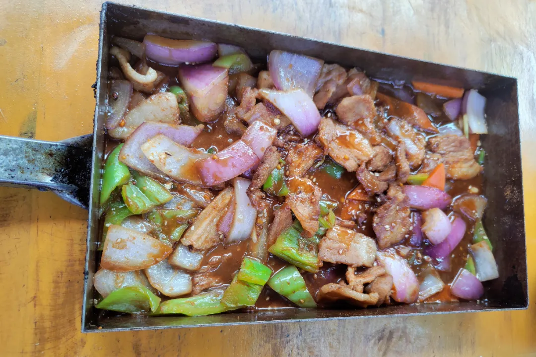 3、金沙滩旁的凤凰里,玩到午饭时间随便找的一家戳子肉店。点的五花肉(48元)和娃娃菜(26元),这家踩坑,菜不好吃。之前是听说戳子肉也算是特色,说是“万物皆可戳”。他家的看起来和铁板炒肉差不多,但是味道差太多了。另外米饭收3元,关键饭也不好吃。景区旁边随便找一家的风险高啊,还是吃点常规的不容易踩雷。所以我还是不知道正宗的戳子肉会是什么样的。