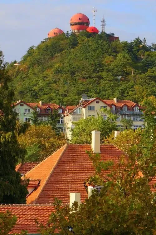 青岛老城区最佳观赏地--信号山公园-- 青岛老城区较高的一座山,其山额处3幢红色蘑菇楼宛如3支熊熊燃烧的火炬,耸立于青松、绿树丛中,格外醒目,登上旋转观景台,感受红瓦绿树,碧海蓝天青岛老城区之美。