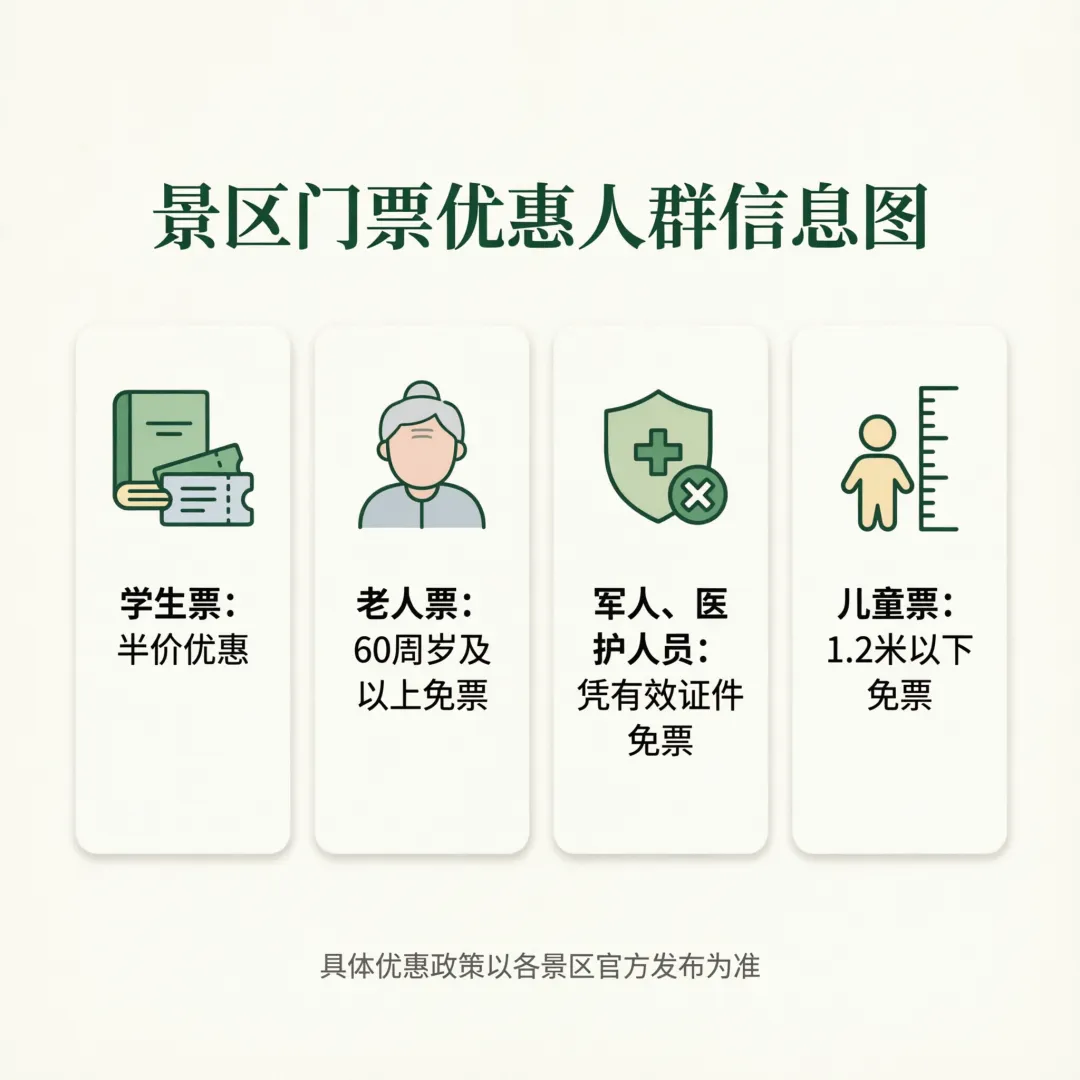 很多人以为学生票只有大学生能买,其实不然。各景区政策不同,以下人群通常能享受优惠: