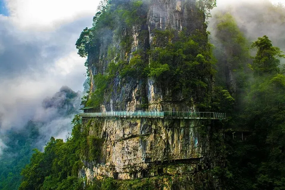 6300米世界最长悬空栈道,行走峭壁如临云端;700余米龙咏大瀑布,世界落差最大的山泉瀑布之一;3D玻璃廊桥、玻璃栈道,惊险刺激;负氧离子46000个/cm³,天然氧吧,洗肺圣地。
