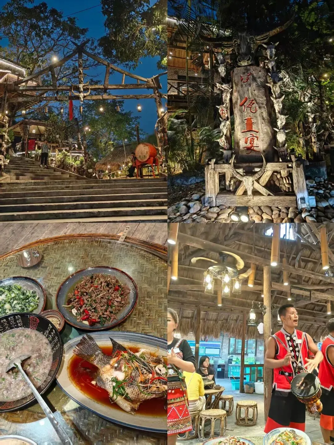 我们入住的别墅区四期地处山顶,距离小区大门路途较远,加上天气炎热酷暑,我们也不愿麻烦乘坐小区摆渡车往返,日常出行全程打车代步。当晚我们打卡了网红餐厅佤王宴民族文化餐厅,打车抵达后才发现,门店位置比较偏僻,店里大多是旅行团游客。用餐期间,还有演艺人员现场演唱敬酒歌,晚餐结束后,户外还会举办热闹的篝火晚会。我们提前在网上团购了套餐,饭菜口味却不尽人意,妈妈直言菜品口感很差,清蒸鱼也不够新鲜。饭后因为临时有事,我们匆匆离场,整体用餐体验十分糟糕。(晚餐总共花费194元)