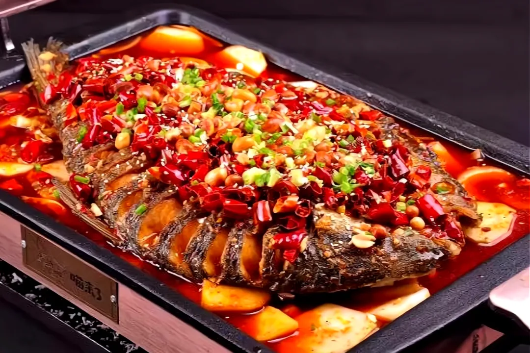 6. 万州烤鱼:先烤后炖,鱼肉焦香入味,可加配菜。