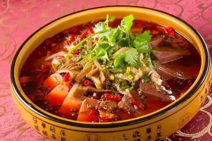 5. 毛血旺:以鸭血、毛肚为主料,麻辣红汤,滋味浓厚。