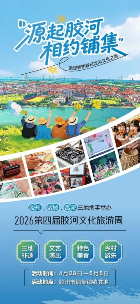 一脉胶河连三地,八方欢聚在铺集!“源起胶河 相约铺集”第四届胶河文化旅游周4月28日—5月5日重磅启幕。以文化为桥、以惠民为本、以消费为媒串联胶州、诸城、高密三地资源,文艺、非遗、招聘、相亲、美食、游乐一站式配齐。这个五一,来铺集就对了!