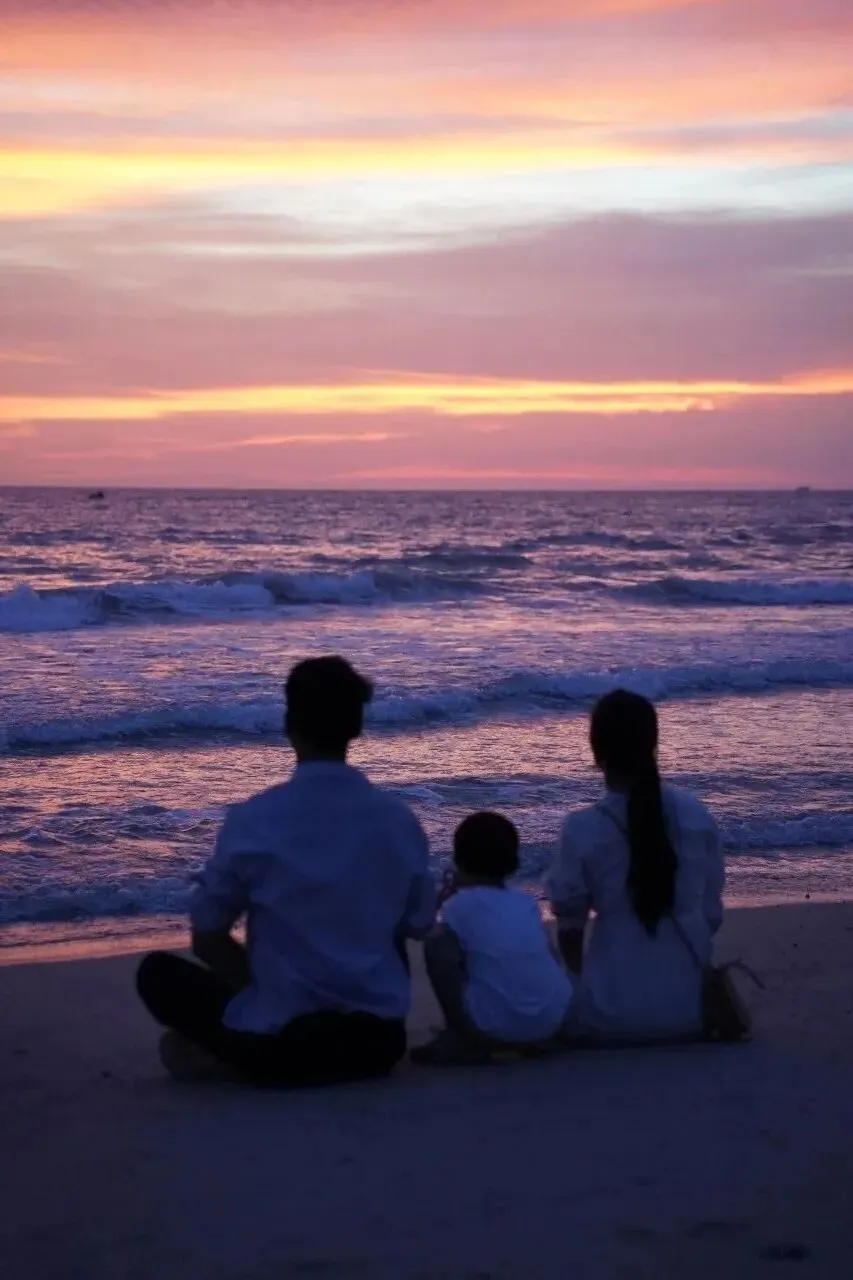 澄澈海水澄澈如温润蓝宝石,这里是全岛绝佳日落观赏胜地。落日熔金,晚风徐徐,一家三口的温柔剪影定格海面,氛围感直接拉满。